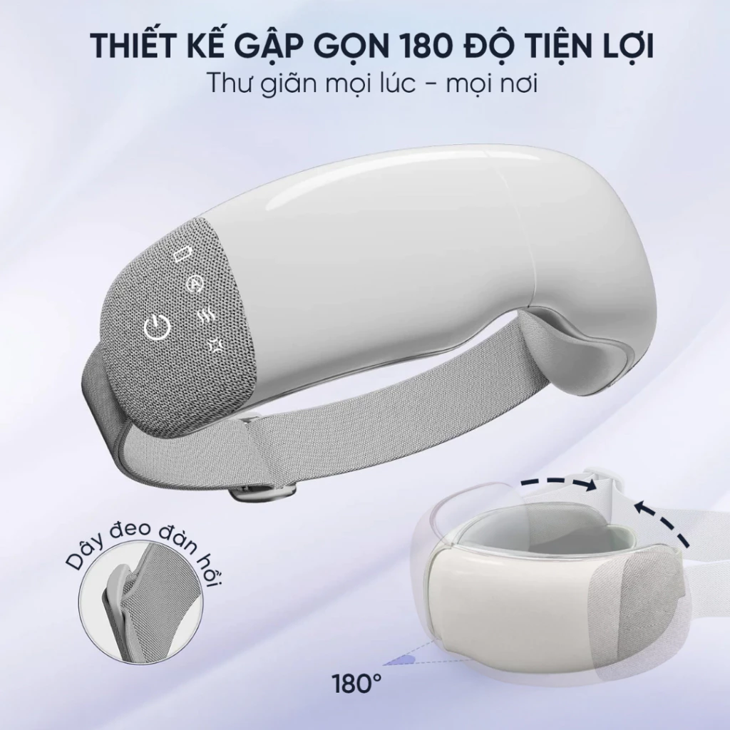 Phần dây đeo đàn hồi êm ái ôm vừa vặn khuôn mặt, tạo cảm giác thoải mái khi sử dụng mà không gây áp lực lên vùng đầu. Dù ở nhà, văn phòng hay trên máy bay, bạn đều có thể tận hưởng cảm giác thư giãn chuyên sâu cho đôi mắt chỉ trong vài phút.