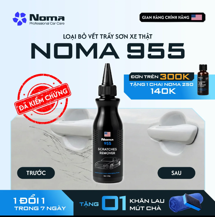 NOMA 955 là giải pháp chăm sóc xe chuyên nghiệp theo tiêu chuẩn Mỹ, giúp bạn loại bỏ các vết trầy xước sơn một cách nhanh chóng ngay tại nhà mà không cần đến máy móc hay ra gara tốn kém. Sản phẩm giúp tiết kiệm tối đa thời gian và chi phí, mang lại vẻ sáng bóng như mới cho xế yêu chỉ với vài thao tác đơn giản. Với chính sách 1 đổi 1 trong vòng 7 ngày (nếu lỗi từ nhà sản xuất), khách hàng hoàn toàn có thể yên tâm về chất lượng sản phẩm.