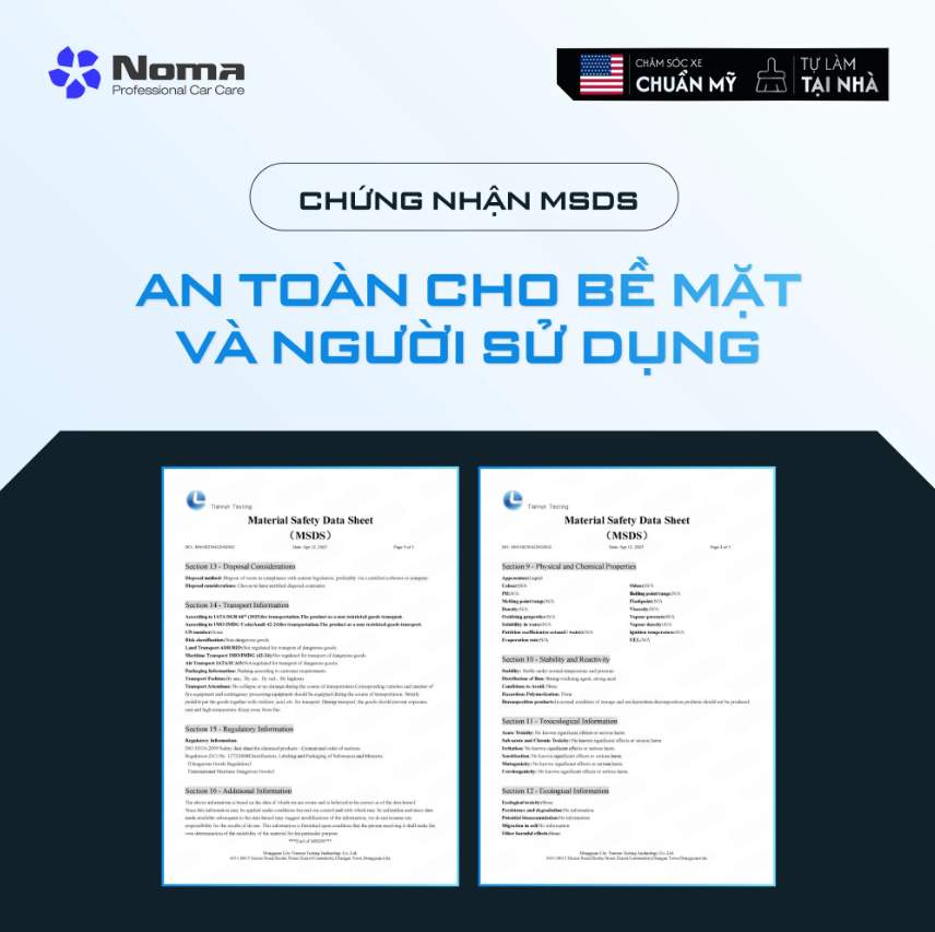 An toàn cho người sử dụng: Đạt chứng nhận MSDS (Material Safety Data Sheet) Tài liệu an toàn hóa chất, đảm bảo không gây hại cho sức khỏe người dùng trong quá trình thao tác.