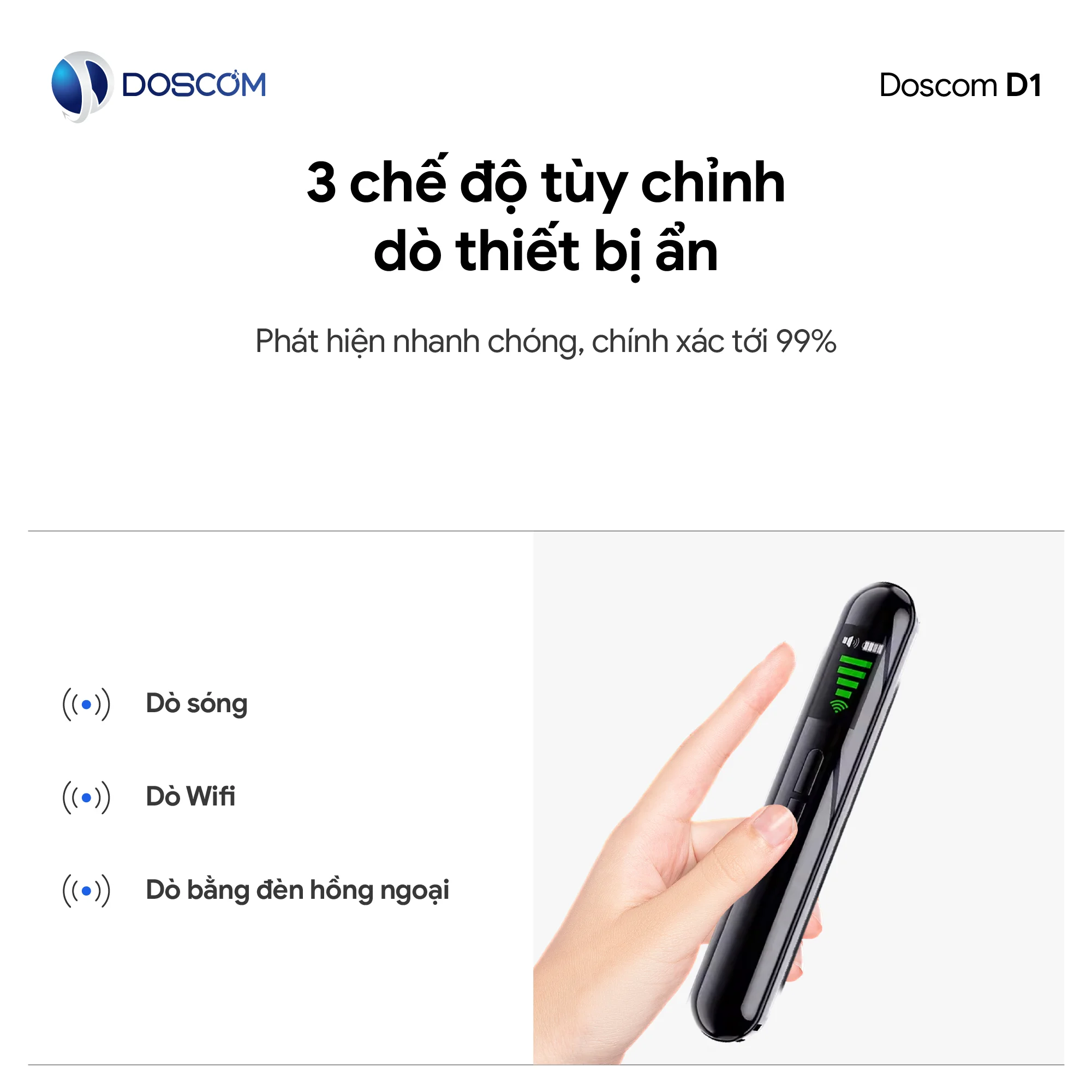 Để tăng cường độ chính xác lên đến 99%, thiết bị dò D1 Doscom tích hợp 3 chế độ dò linh hoạt, cho phép bạn đối phó với mọi loại thiết bị đặt lén: