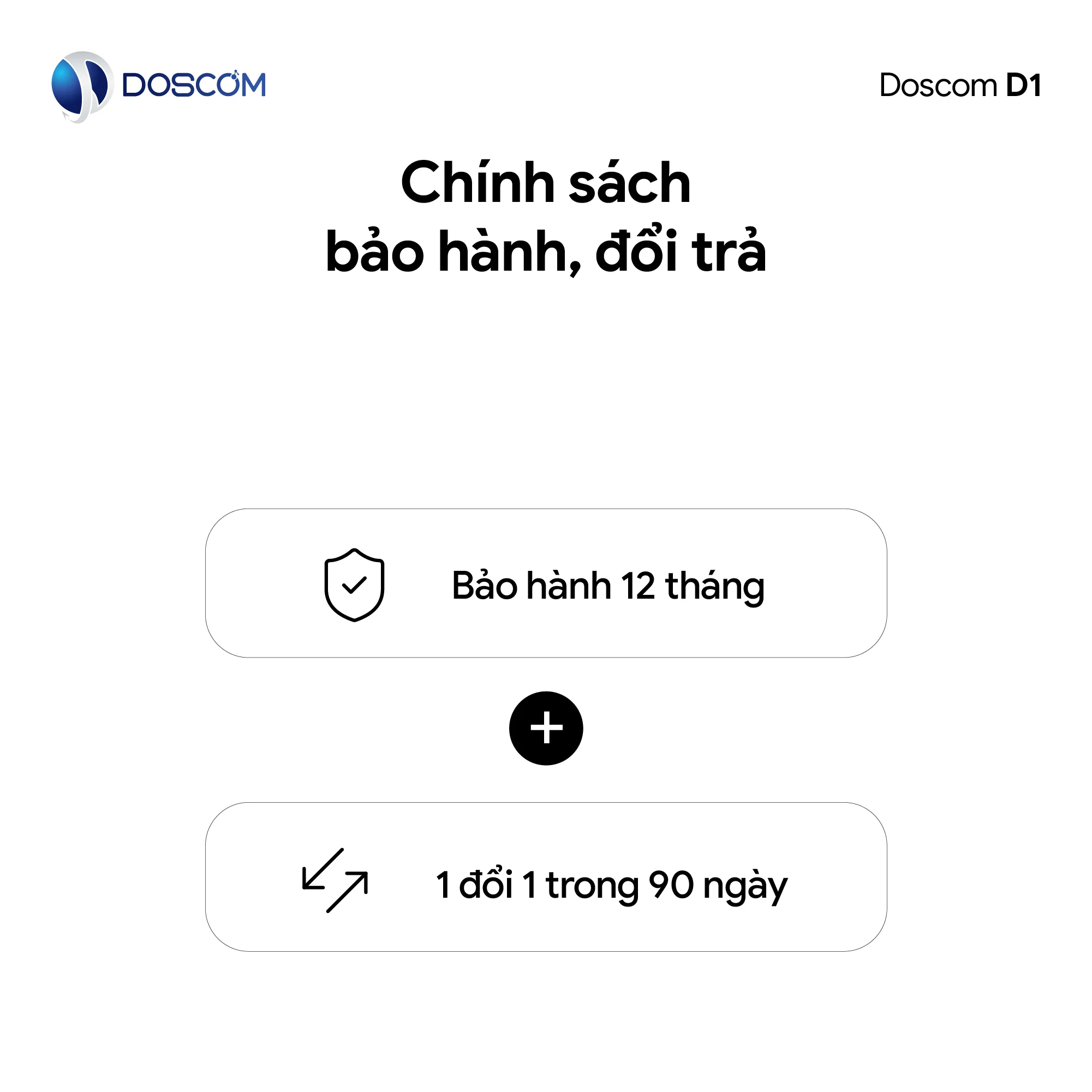 Tuyệt đối an tâm khi mua sắm! Thiết bị dò D1 Doscom được áp dụng chính sách bảo hành chính hãng 12 tháng và ưu đãi 1 đổi 1 trong 90 ngày nếu có lỗi từ nhà sản xuất. Cam kết chất lượng và sự hỗ trợ tốt nhất cho khách hàng.